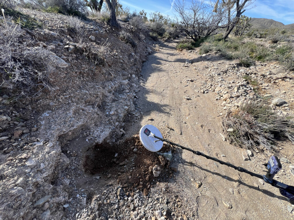 We’ve recovered small nuggets using metal detectors on this claim, and the surrounding area has a history of similar finds. The gravels and caliche combinations make this an excellent site for drywashing, detecting, and exploratory sampling.